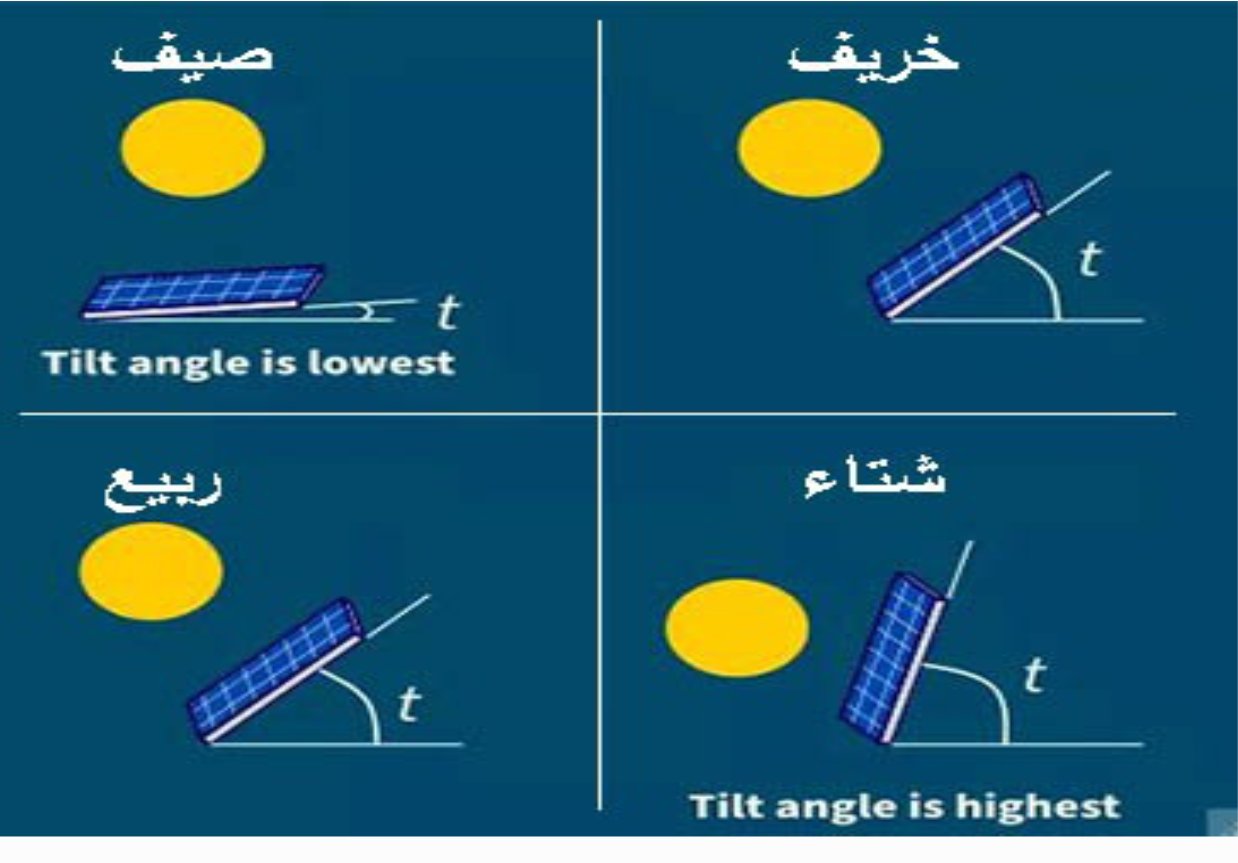 تحديد اتجاه تركيب الألواح الشمسية يتم توجيه الألواح الشمسية في منطقة شمال خط الاستواء باتجاه الجنوب بينما منطقة جنوب خط الاستواء يتم توجيه ألواحهم باتجاه الشمال بزاوية محددة حسب خطوط العرض