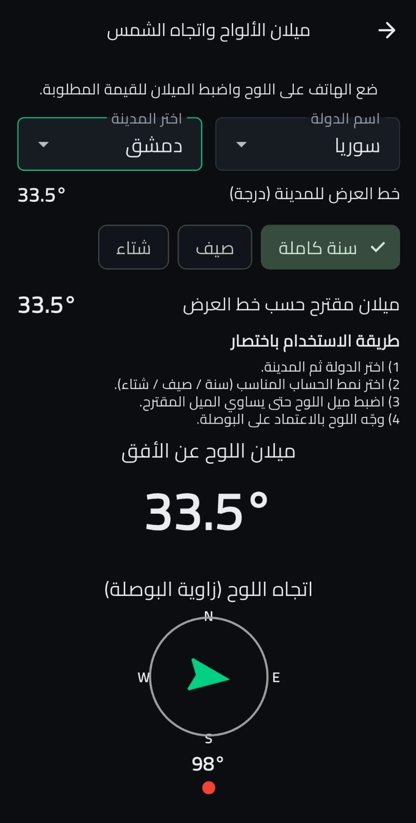 حاسبة سولار المبسط باللغة العربية (Solar Calculator)