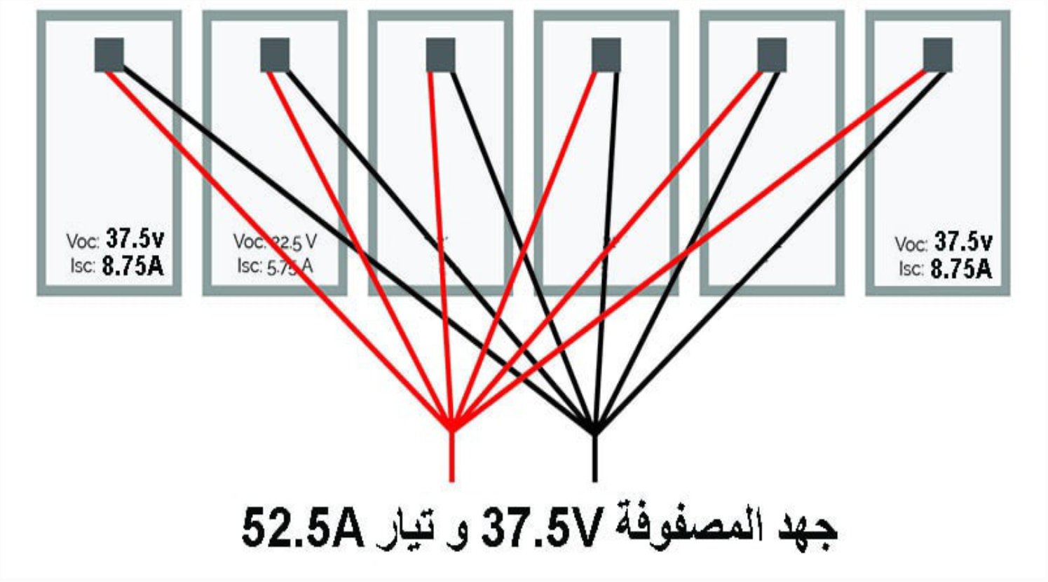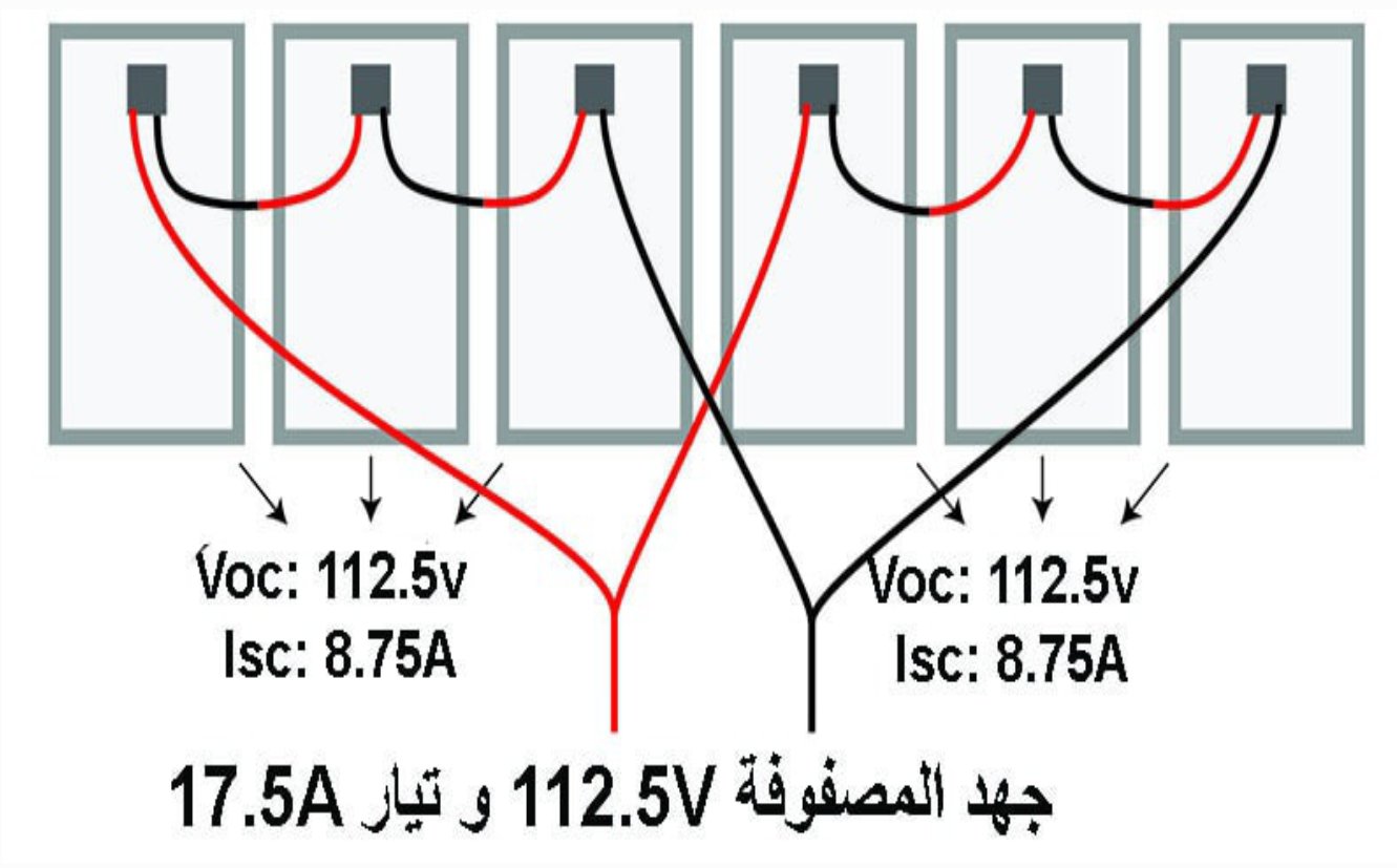 - توصيل الألواح الشمسية يجب ان تكون الألواح من نفس الماركة وبنفس القدرة هناك ثلاث أنواع لتوصيل الألواح الشمسية